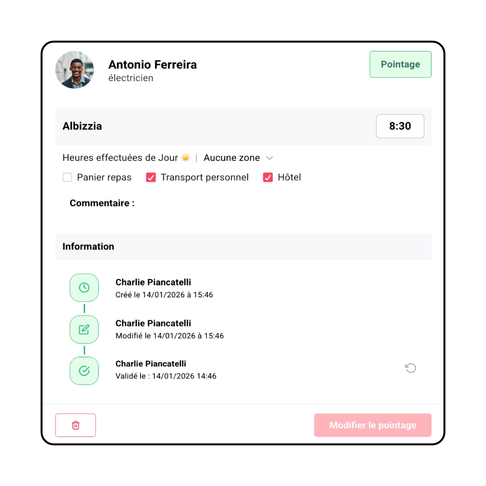 Validation et correction des pointages en un clic depuis le back-office